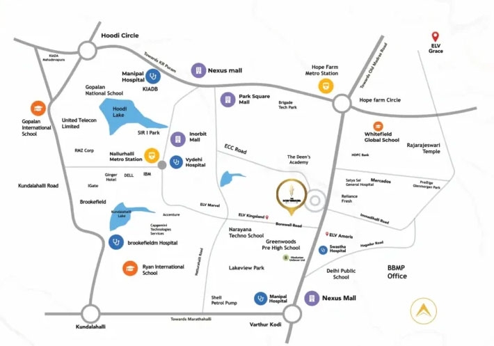 Nearby Landmarks - Schools: Whitefield Global School, Deens Academy Whitefield, Gopalan International School