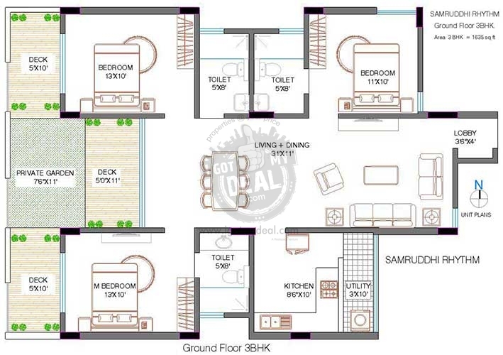 | 3 BHK | 1570 | 54.98 Lacs |