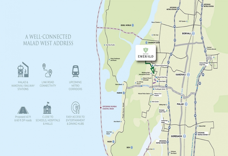 Metro/Railway: Malad Railway Station, Kandivali Railway Station, Lower Malad Metro Station