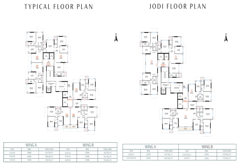 Total Floor G+19/Lifts - 2 Each Wing/3 Flats per floor