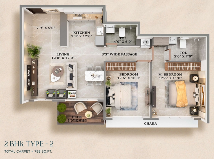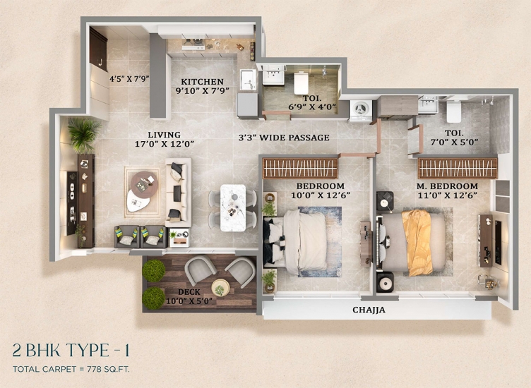 | 2 BHK | 778 Sq.ft Carpet Area | 1.25 CR |