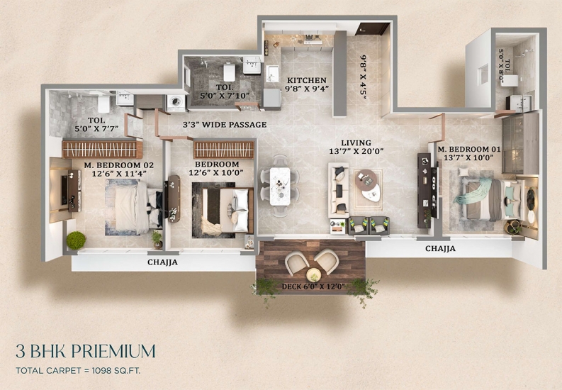 | 3 BHK | 1098 Sq.ft Carpet Area | 1.76 CR |